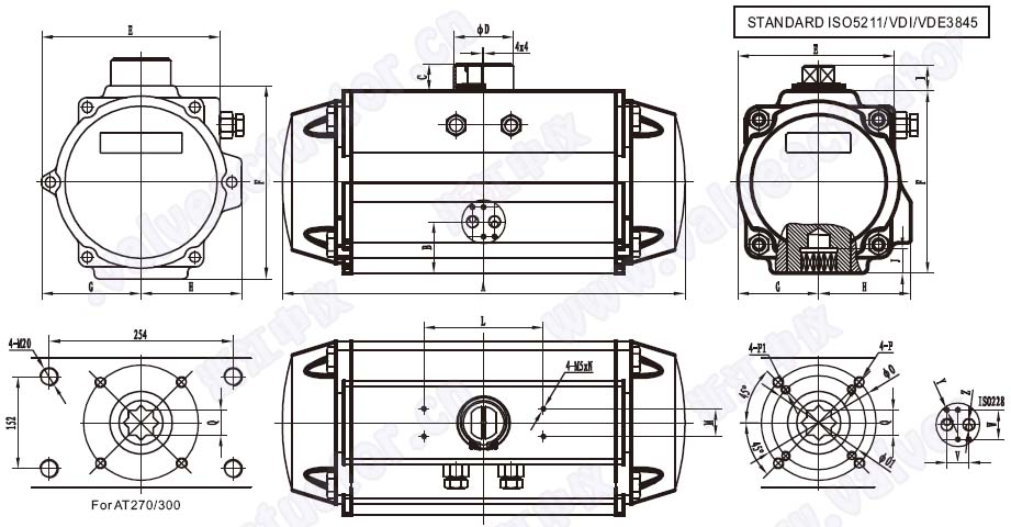 10) The connection part is consis-tent with the latest internati-onal standard ISO5211 and DIN3337(F03-F25) specifications, and thus enable interch-anging and general installation.